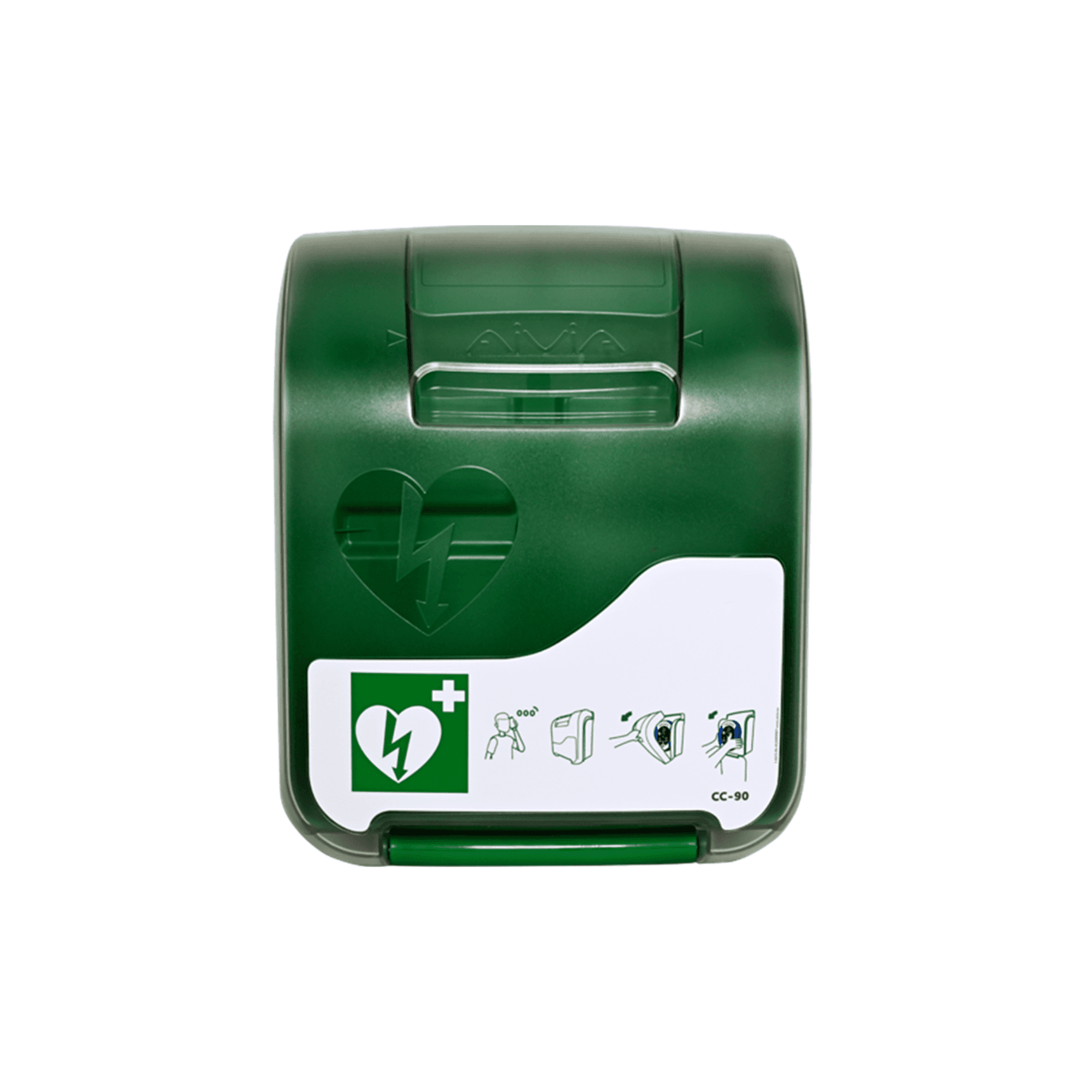 White AED Cabinet Aluminium lockable with pin code, clear front for visual inspections with ARC approved signage