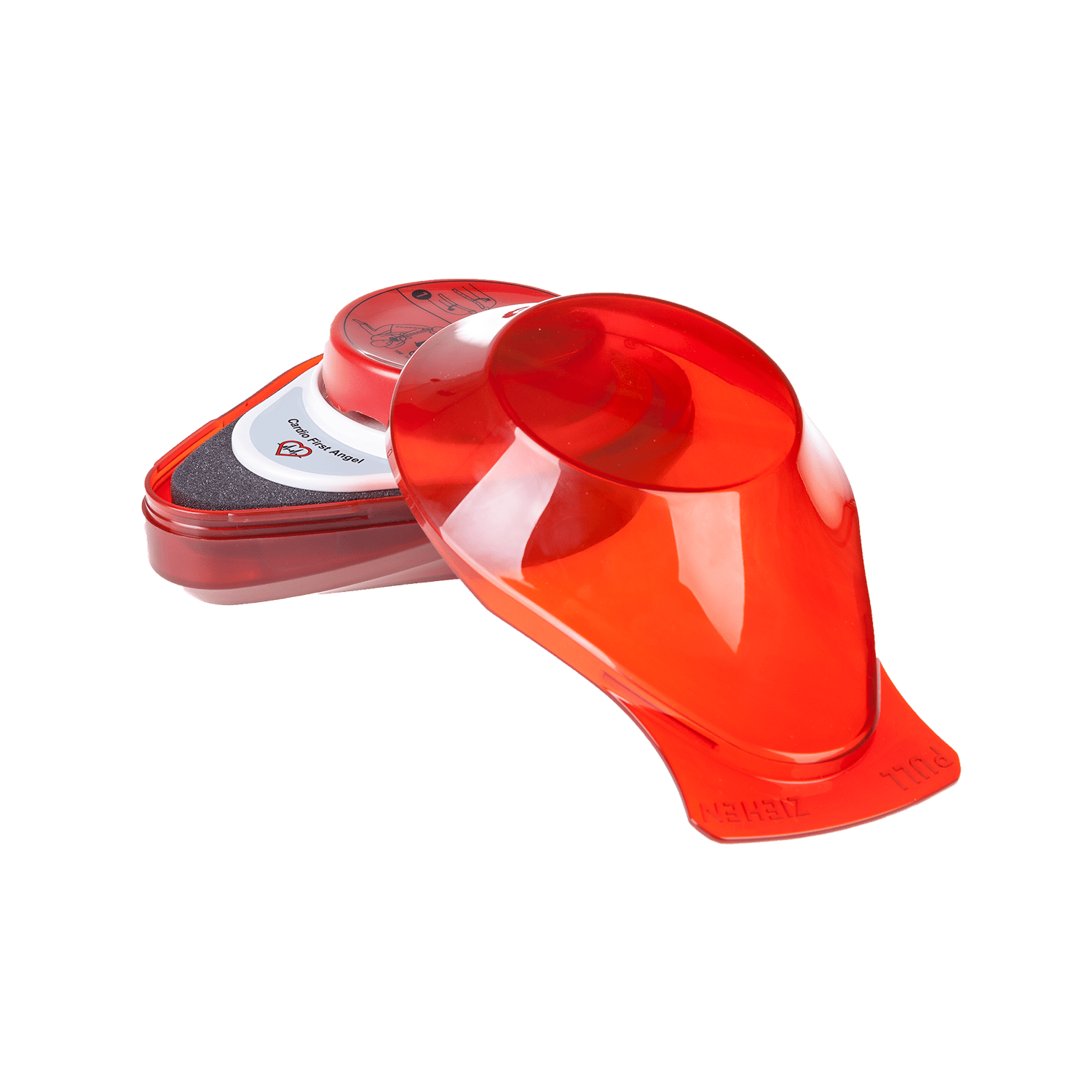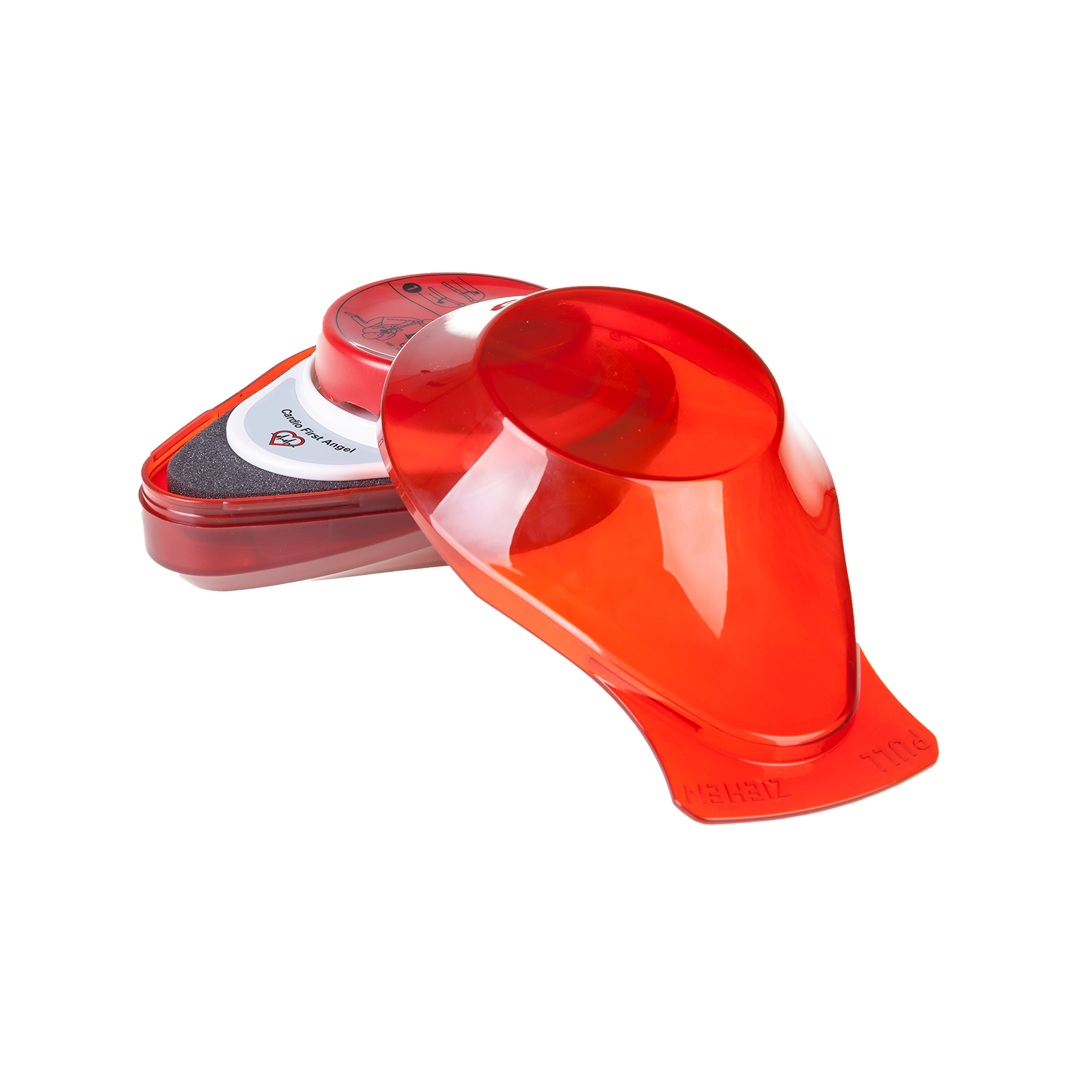 The Cardio First Angel helps ensure effective delivery of bystander CPR until emergency services arrive. When a click is not heard on a compression the bystander knows that their ‘push’ effort was not strong enough to deliver effective CPR and compression of the heart. The cardio first angel also distributes the force of the compression on a larger surface area of the chest and so will reduce the likelihood of breaking a rib. The second audible noise is the ‘clack’ which you hear when you allow the device and chest to fully recoil, creating a negative pressure in the chest and allowing the heart to fill with blood.