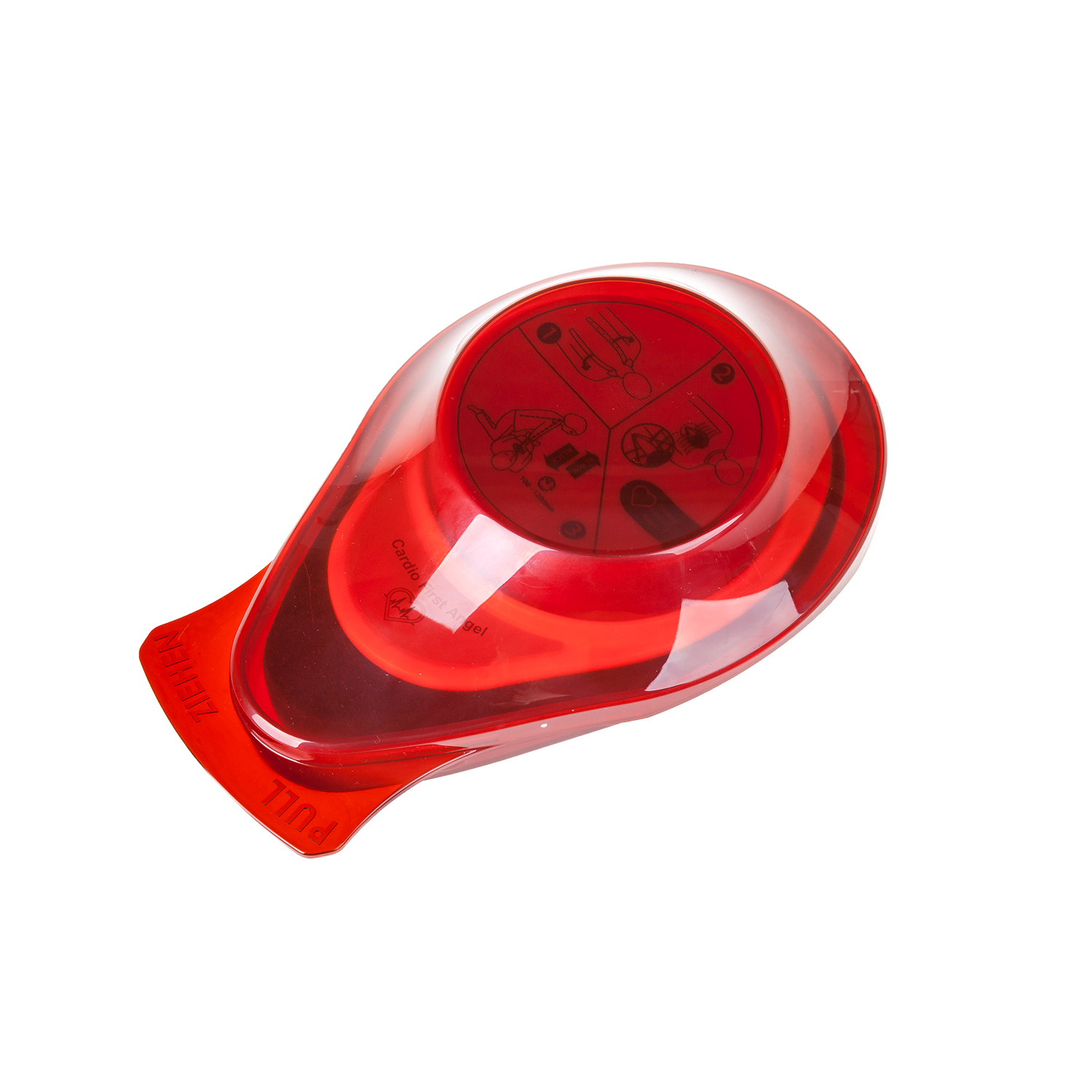 - Position instructions (teardrop shape), non-slip foam for steady positioning absorbing liquids and sweats, acts as a buffer makes the first responder more willing to carry out CPR